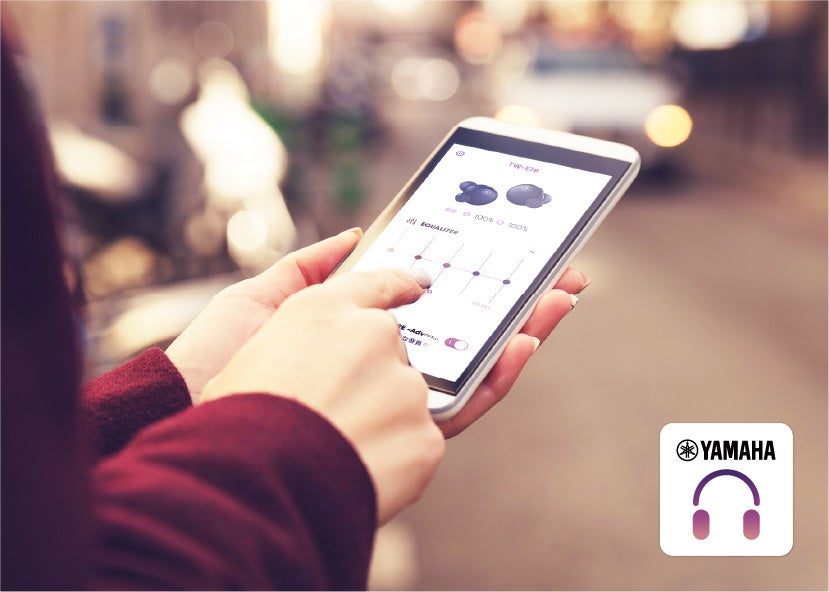 音楽をいい音でより永く楽しんでいただくために、ヤマハでは聴覚保護に配慮した音楽リスニングを推奨しています。その一環として、ヤマハのイヤホンには過剰に音量を上げることなく小さな音量でも音楽を十分に楽しんでいただける独自の機能「リスニングケア」を全てのイヤホンに搭載しています。『TW-E7B』では、その上位機能である「リスニングケア(アドバンスド)」を搭載しました。通常の「リスニングケア」機能に加え、「コンテンツの音量」や「周りの騒音(フロアノイズ)」の変化をインテリジェントに解析し、音量やリスニングケアのパラメーターを自動的にコントロールすることで常に最適なバランスで音楽を再生します。さまざまな音量・環境・コンテンツに対してこれらの対策を施すことで、聴覚保護により一層配慮した音楽リスニングを可能にしました。また前述のANCの活用もフロアノイズを低減し過大な音量での音楽聴取の防止に役立ちます。