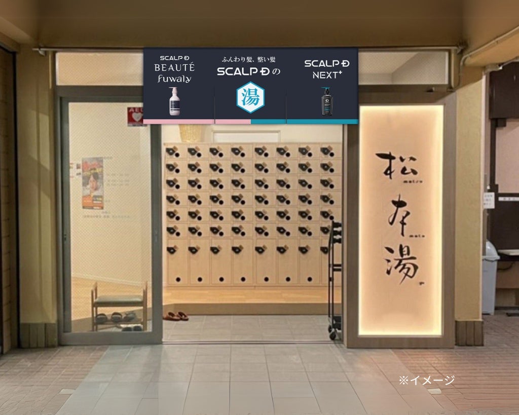 都内屈指の人気温浴施設「松本湯」では、正面玄関や男女浴室入口に「SCALP D」オリジナルデザインの暖簾が登場します。フォトスポットとしてもお楽しみください。また、施設内では「SCALP D NEXT+」「スカルプD ボーテ フワリー」など、アンファーが展開する様々なインバスアイテムが体験可能です。サウナ後のヘアケア・ボディケアとしても是非お試しください。