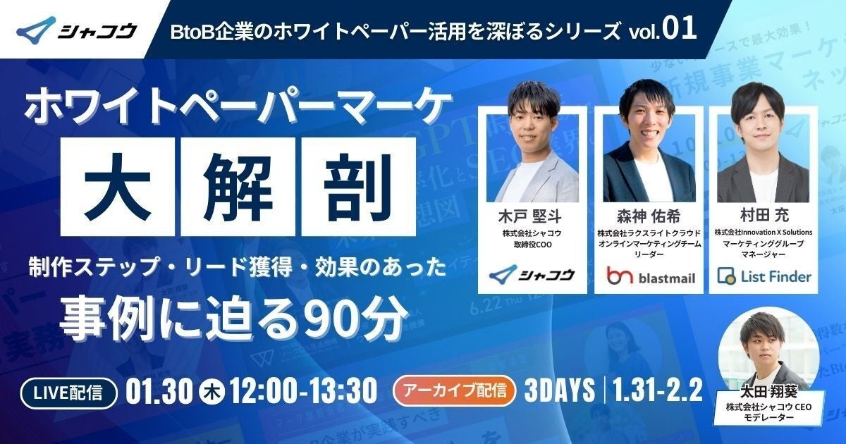 【 1/30(木)開催 】ホワイトペーパーマーケ大解剖 Vol1 制作ステップ・リード獲得・効果のあった事例に迫る90分