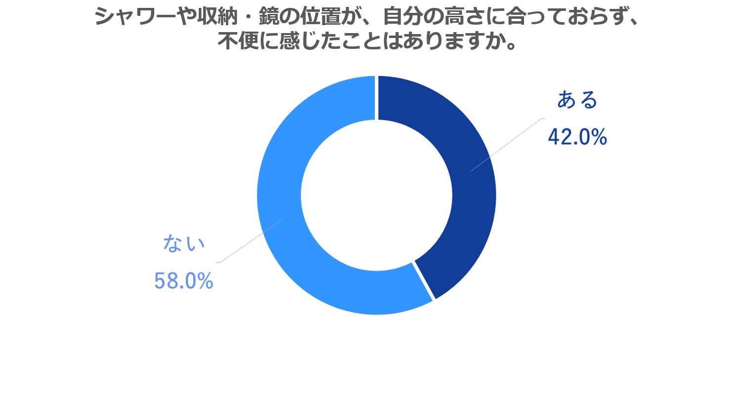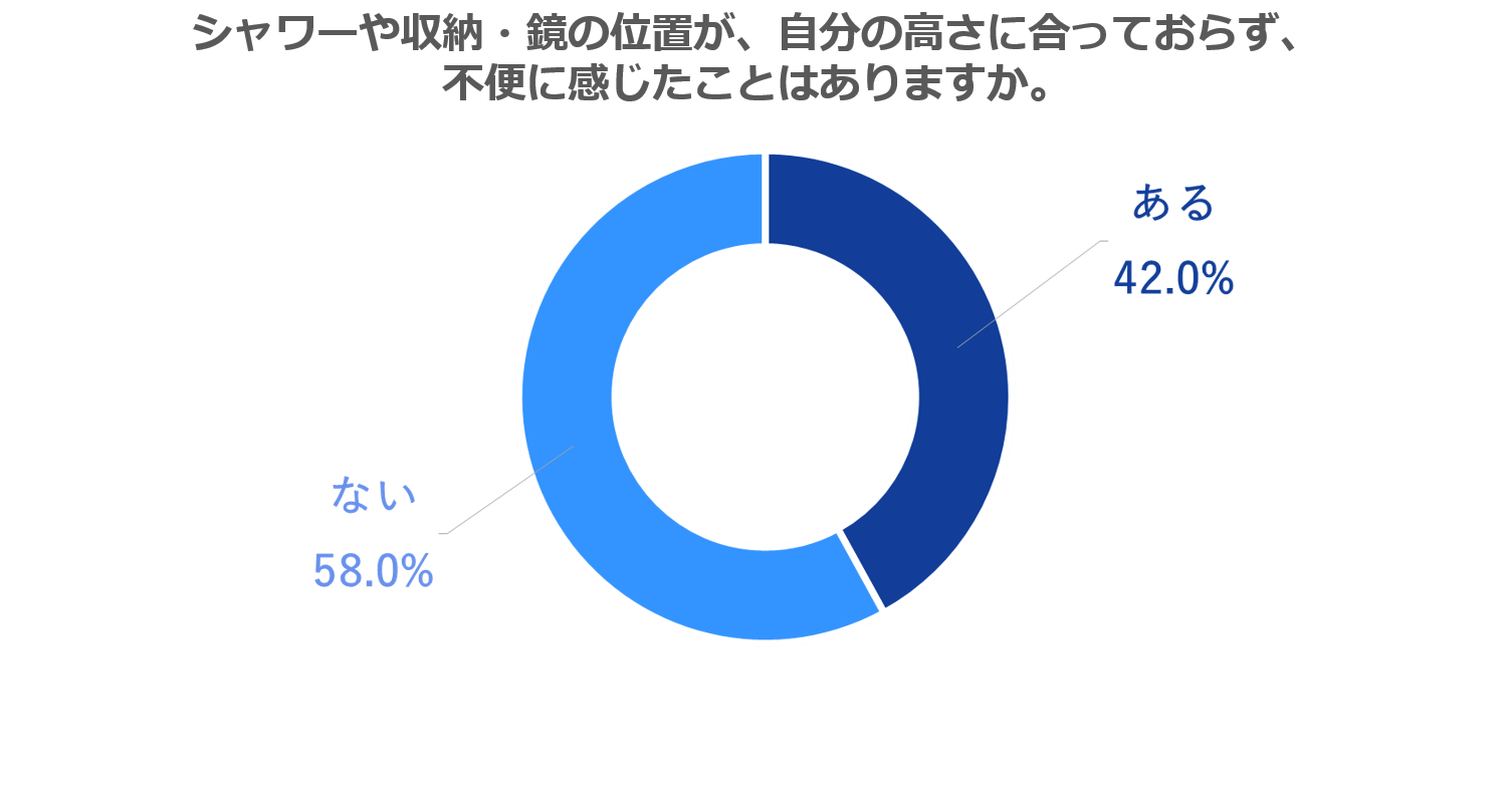 「シャワーや収納の位置が自分の高さにあっておらず、不便を感じた」は4割以上