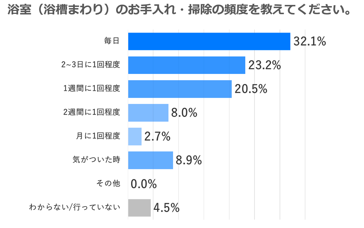 浴室のお手入れ頻度、浴槽まわりは「毎日」、内装品は「2~3日に1回」