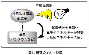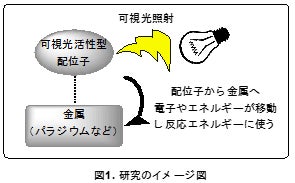 そこで、同研究グループは、可視光のエネルギーを効率的にパラジウムに受け渡す、新たな配位子のデザインおよび合成を行うこととしました (図1)。