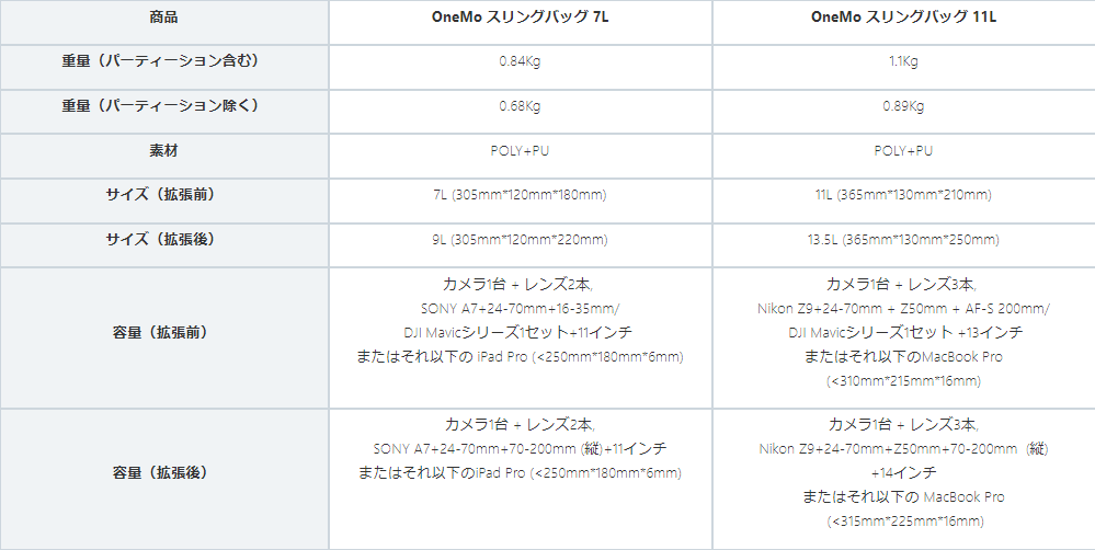 PGYTECH OneMo スリングバッグ 詳細/購入