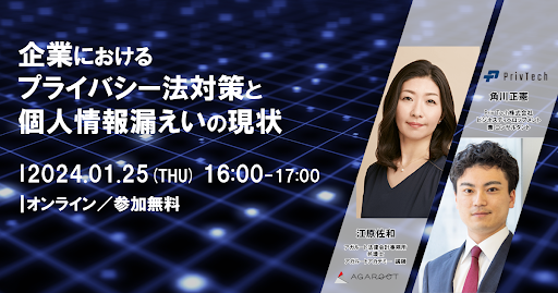 2024年1月25日(木)に無料セミナー 「企業におけるプライバシー法対策と個人情報漏えいの現状」をアガルート法律会計事務所とPriv Techが共催します。