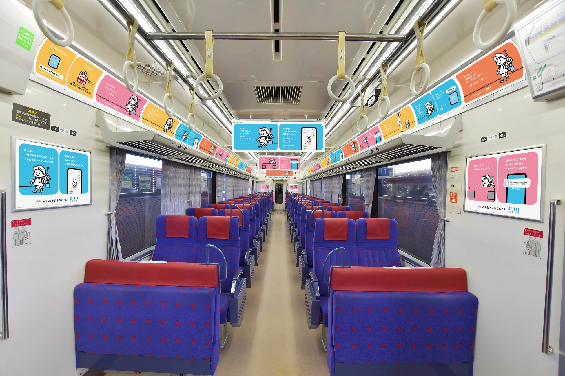 1編成の車内を「みてねみまもりGPSトーク」の広告でジャックします。