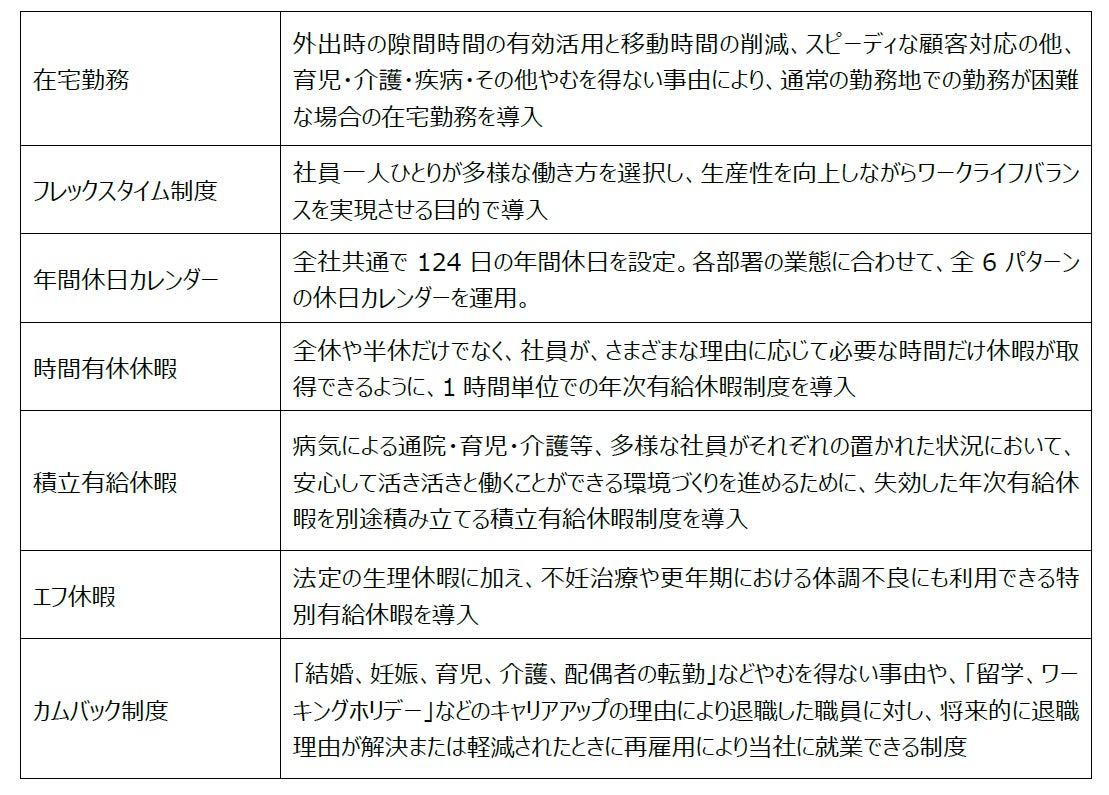 当社では、すべての社員の働きやすい環境実現を目指し、他にもさまざまな制度を設けています。