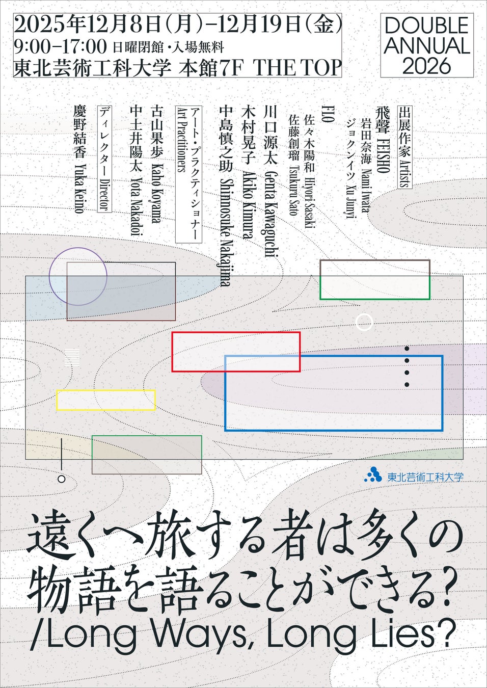 京都芸術大学(京都市左京区/学長 佐藤 卓)と東北芸術工科大学(山形市上桜田/学長 中山ダイスケ)の学生選抜展「DOUBLE ANNUAL2026――遠くへ旅する者は多くの物語を語ることができる?/Long Ways, Long Lies?」を2026年2月21日(土)~3月1日(日)に国立新美術館で開催します。