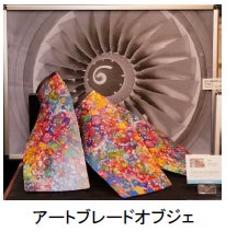 また、JALとヘラルボニーの共創によって生まれた航空機部品廃材(ボーイング737-800型機のエンジンファンブレード)とアートを組み合わせた「アートブレードオブジェ」の展示や、JALの客室シートカバー(革)にヘラルボニーデザインを加えることで完成したコラボレーションバゲージタグの期間限定販売を行います。