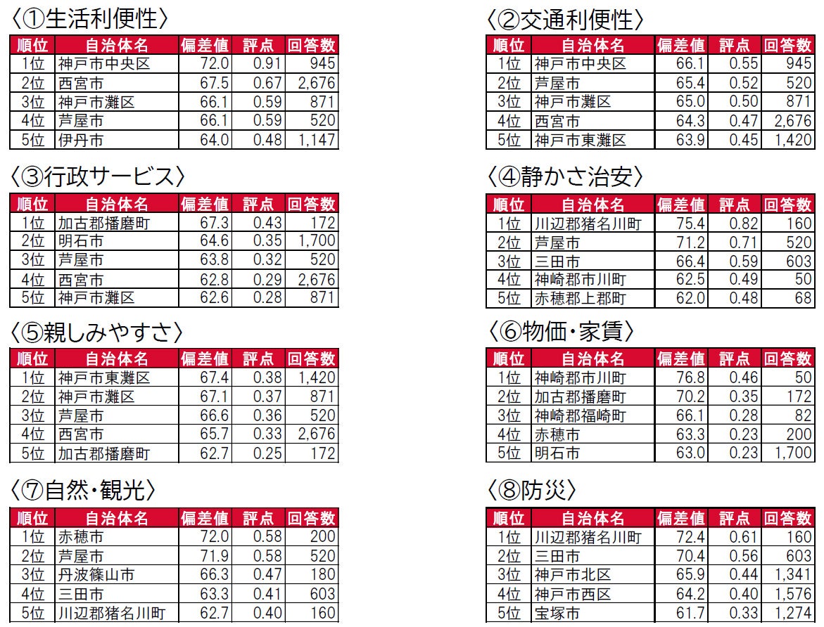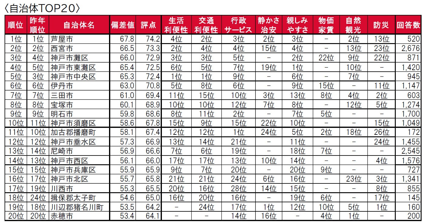 •昨年は兵庫県内のみの自治体を対象に集計していたため、県外の自治体の昨年順位は「-」となっています。