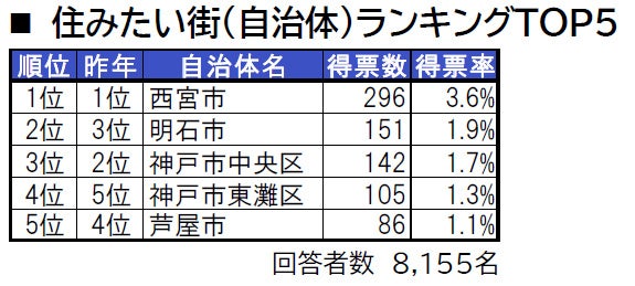 •「住みたい街(自治体)ランキング」は、兵庫県居住者による全国の自治体を対象とした2022年回答を集計しました。