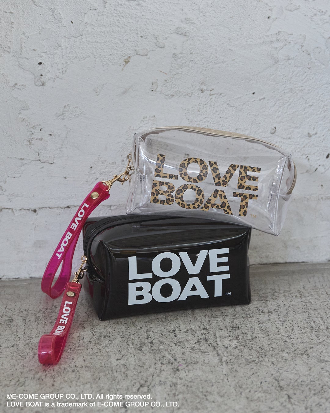 別注アイテムは、バックプリントにLOVE BOATのロゴを大きくプリントしたパーカーや当時を思い出すようなクリア素材のポーチ、アニマル柄トートバッグなどをご用意いたしました。LOVE BOATを象徴するようなデザインを取り入れつつ、日常使いしやすいアイテムに仕上げました。