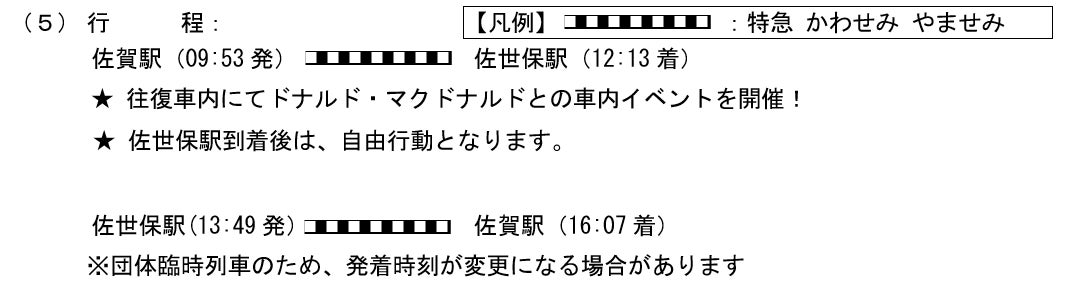 ポイント:①特急 かわせみ やませみが佐賀駅~佐世保駅間を特別運行いたします。