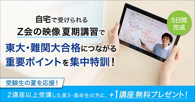 【Z会の映像】大学受験生向けの夏期講習を2講座以上受講するともう1講座無料で受けられるキャンペーン実施中!