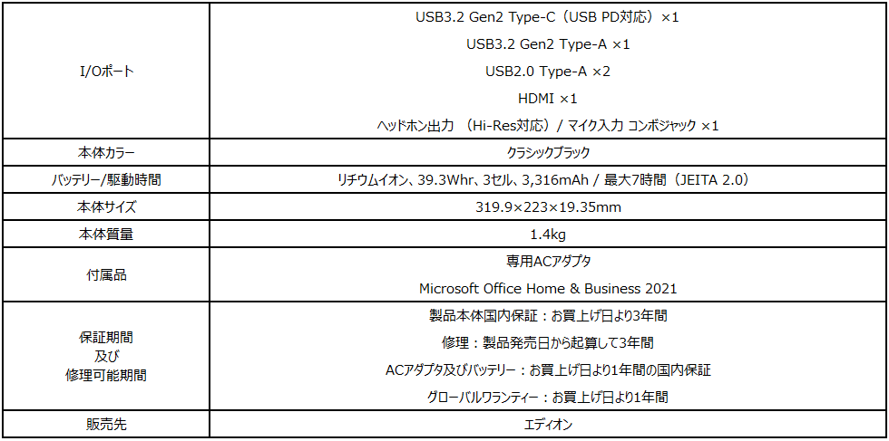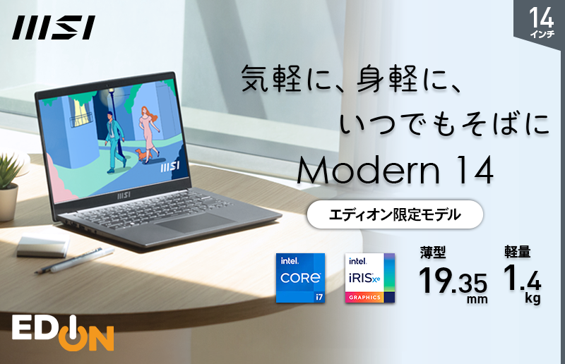 ハイブリッドワークにもご家庭用にも使えるオフィス付き薄型・軽量ビジネスノートPC 3年保証付きエディオン限定モデル「Modern-14-C11M-6027JP」発売