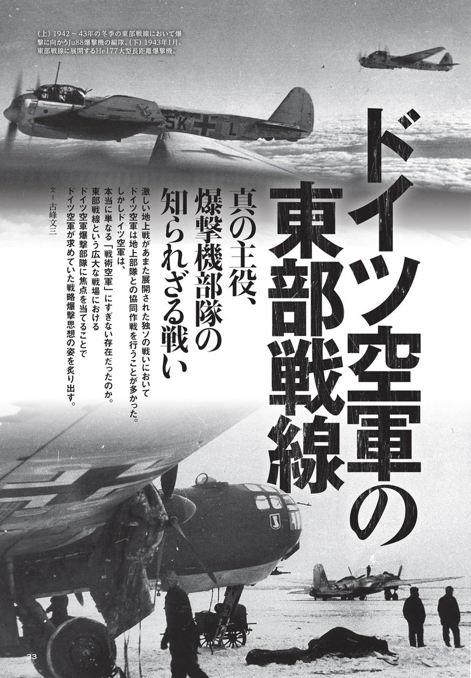 第一特集では、ドイツ空軍の東部戦線での戦い(対ソ戦)の開始から終わりまでを、主に爆撃機部隊を軸に見ていきます。ドイツ空軍といえば一般的に陸上部隊への支援を主任務とする「戦術空軍」のイメージを持たれていますが、実際には戦略爆撃なども実施できる「戦略空軍」の顔も持っていたことを、その作戦や指揮官の言動、装備を通じて浮き彫りにします。