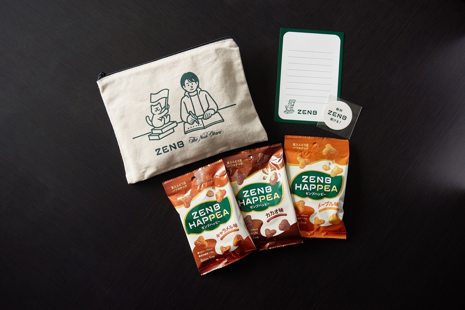豆から生まれたザクっと食感のパフスナック「ZENBハッピー」(カカオ、メープル、キャラメルの3種)、オリジナル応援ステッカー、メッセージカードが入った「ZENB応援ポーチ」をプレゼントします。食べると”ハッピー“になれるやさしい甘さ、軽やかな食感は試験の合間や、受験勉強の気分転換にぴったりです。