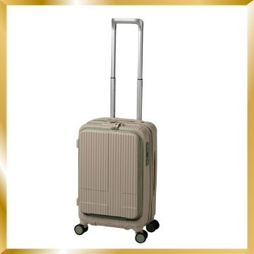 機内持ち込み対応サイズ。キャスターは日乃本錠前製の双輪キャスター消音タイプで、快適な走行&操作性が特長です。