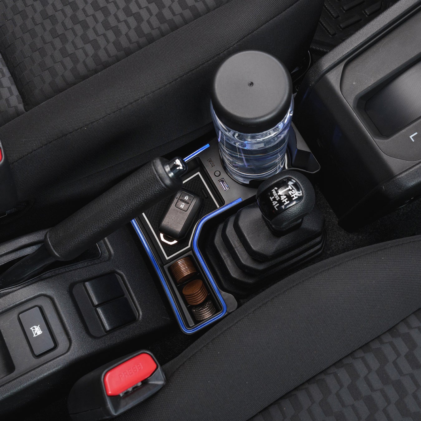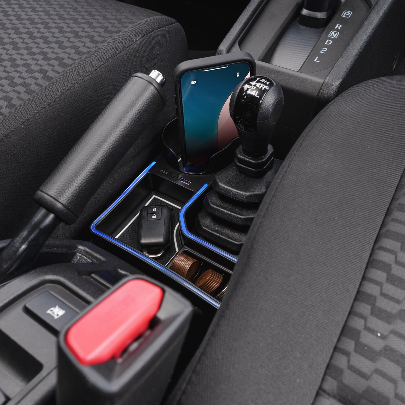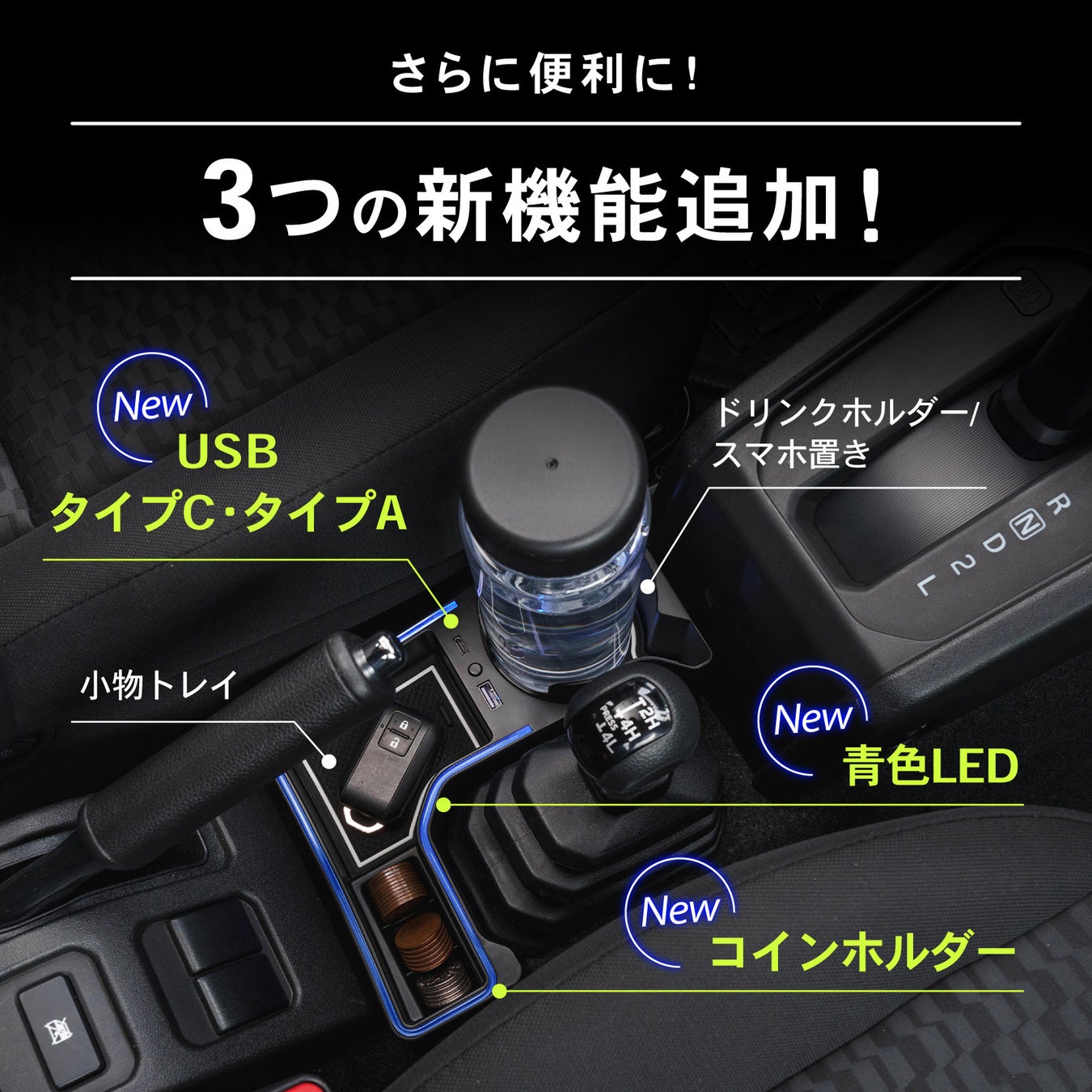 【3つの新機能追加】ジムニーシエラ ノマド専用「増設USBドリンクホルダー」車種専用設計・青色LED搭載・USB増設機能&コインホルダー付き。 ドライブが便利で快適に!ジムニーオーナー必携アイテム。