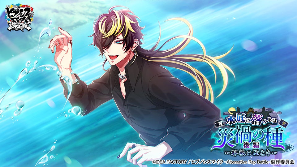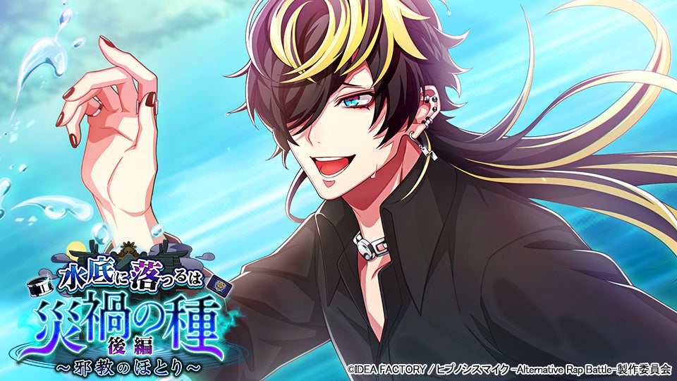 スマートフォン向けゲームアプリ『ヒプノシスマイク -Alternative Rap Battle-』にて、イベント「水底に落つるは災禍の種 後編~邪教のほとり~」を本日開始いたしました。