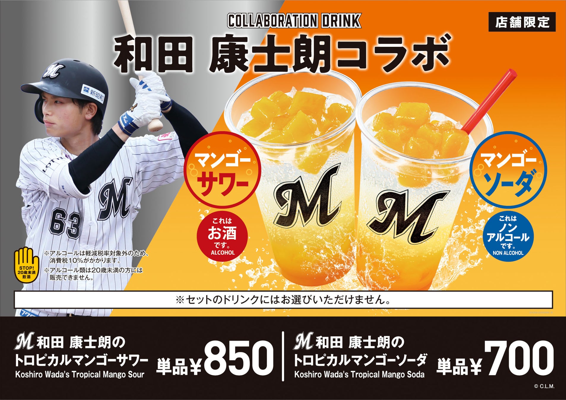 小島 和哉選手が好きなローストビーフを使用した「小島 和哉のローストビーフバーガー」や、佐藤 都志也選手が好きなニンニクをふんだんにトッピングした「佐藤 都志也のガーリック牛カルビバーガー」、和田 康士朗選手が好きなマンゴーを使用した「和田 康士朗のトロピカルマンゴーサワー」と「和田 康士朗のトロピカルマンゴーソーダ」をご用意しました。