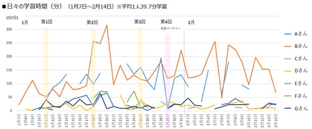 ・ラボ校キッズ(学習開始適齢期:5-8歳)の平均学習時間は1日20分弱ですが、シニア受講者は39.7分