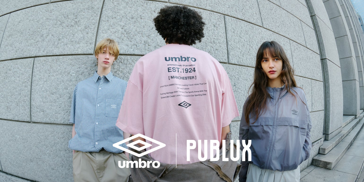 イギリスのフットボールブランド「umbro」に、いま着たいリアルクローズを自由な感性で提案するジェンダーレスなストリートブランド「PUBLUX」が別注したアイテムが登場!!