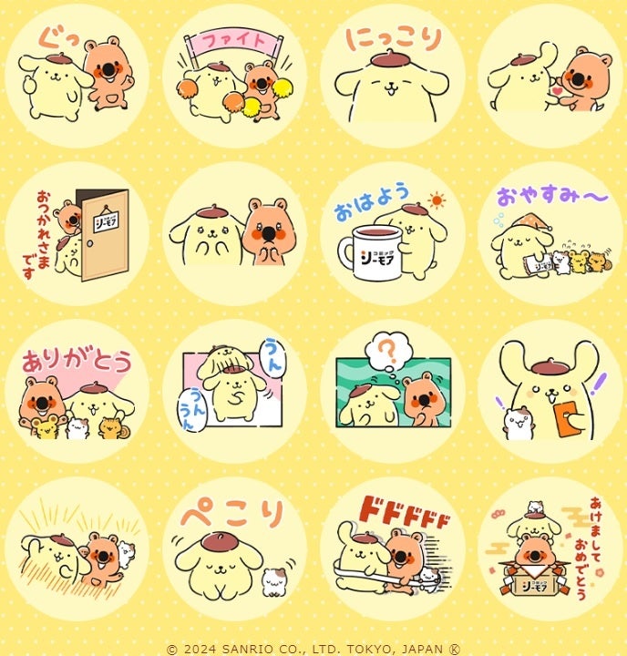 コミックシーモアオリジナルLINEスタンプ第6弾は、サンリオの人気キャラクター「ポムポムプリン」とコラボレーション。「ポムポムプリン」とのんびりとしたヨムビーが可愛らしく描かれています。2024年12月17日(火)より、コミックシーモアLINE公式アカウントを友だち追加していただくと無料でLINEスタンプをダウンロードしていただけます。ぜひ、この機会に様々なコミュニケーションシーンでご活用ください。