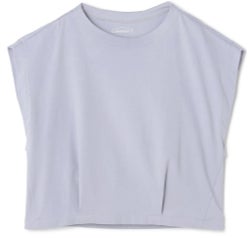 ゆったりめのサイズ感です。また、二の腕の気になる部分が隠れる程度の袖丈で、細見え効果もあります。さらに、脇部分は下着が見えにくいマチ付きで安心してお召いただけます。