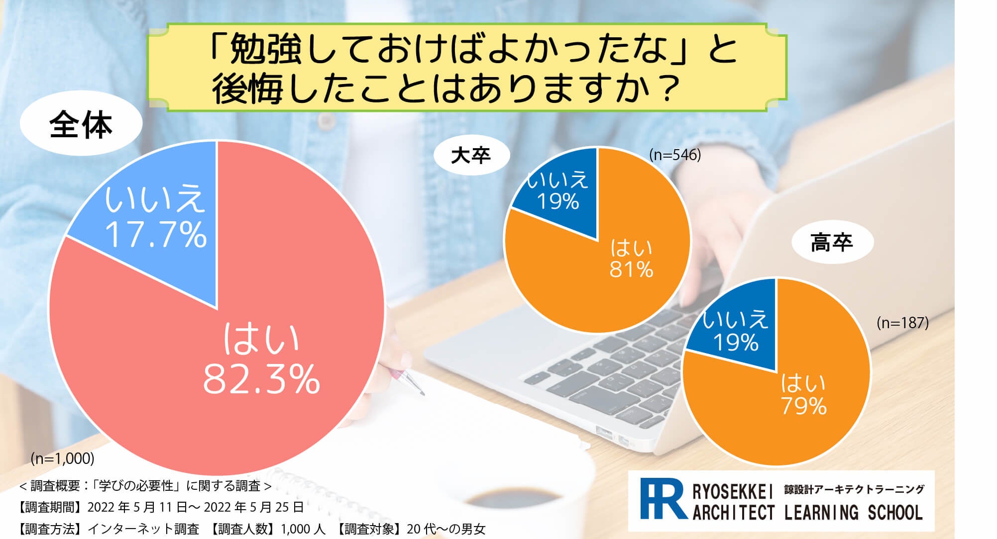 【資格取得は通信講座の老舗「諒設計アーキテクトラーニング」】勉強しておけばよかった…と後悔したことはありますか?(本社所在地:福岡県福岡市、代表取締役:石丸大輔)