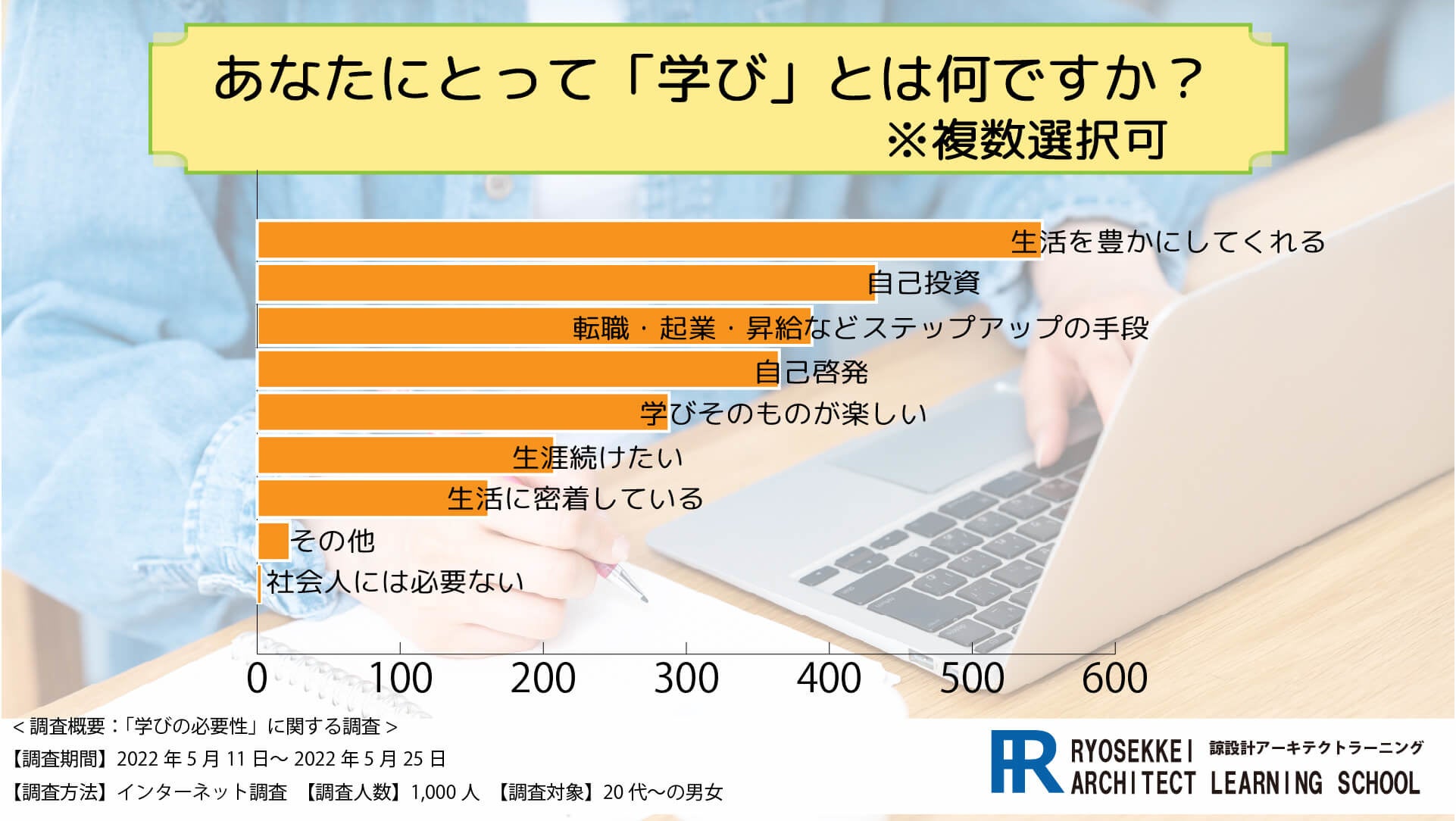 そこで今回、通信教育講座・資格の『諒設計アーキテクトラーニング』(https://www.designlearn.co.jp/)を運営する株式会社新生技術開発研究所は、「学びの必要性」についてのアンケート調査を実施しました。