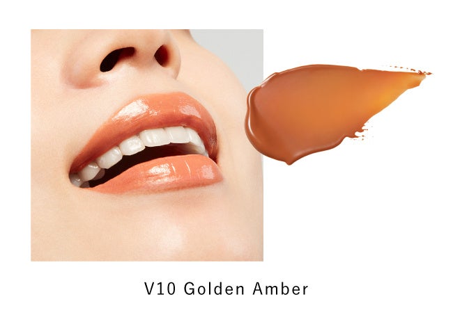 やわらかい赤みを帯びた光で唇を包み、表情までも輝かせるゴールデンアンバー