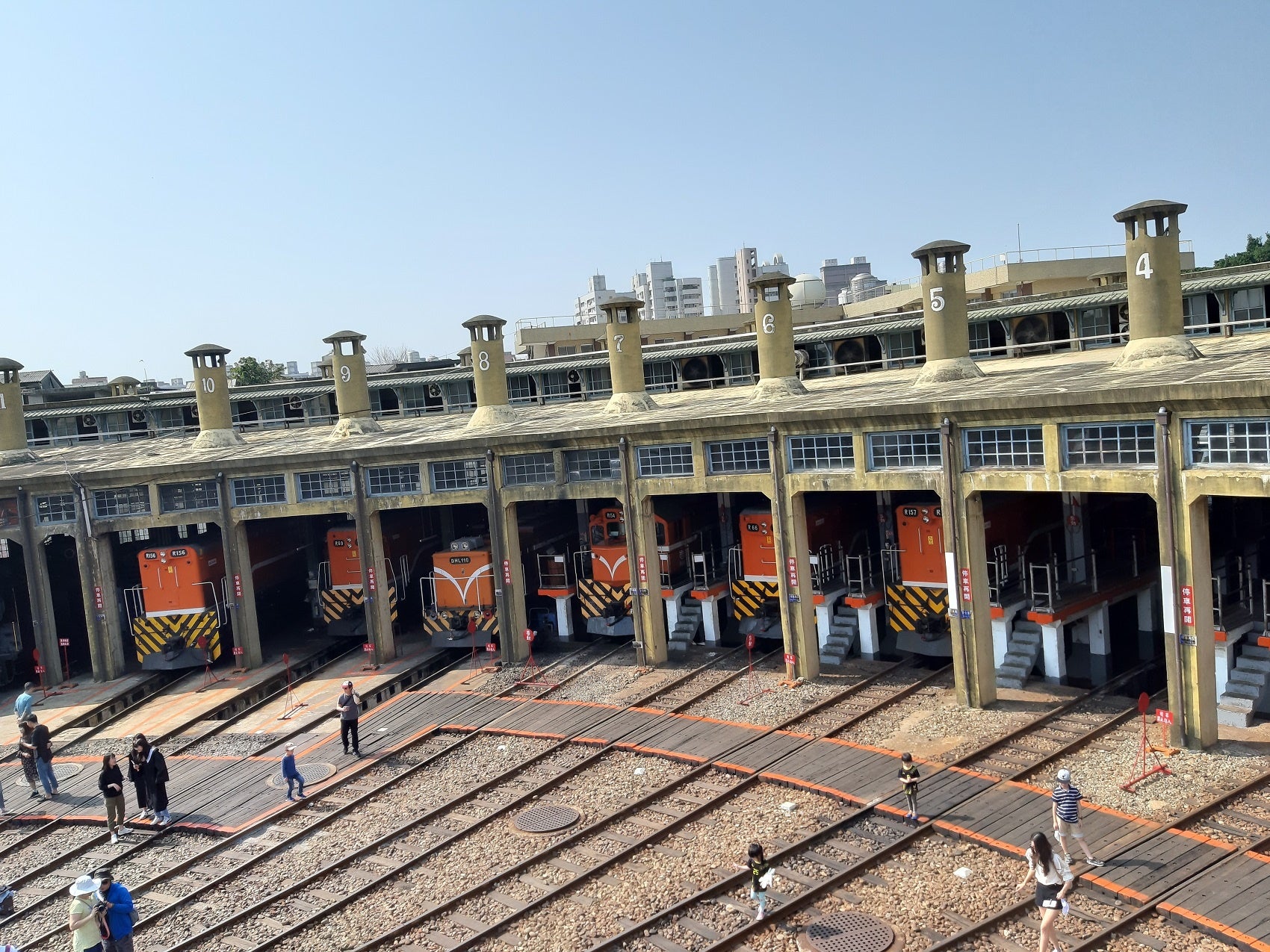 彰化県の古跡に指定される彰化機務段の扇形車庫は、日本統治時代の1922年に建設され、現在も台湾で唯一、現役で使用されている扇形車庫です。中央の転車台を囲むように車庫が並んでいる姿がまるで扇のように見えることから、扇形車庫と呼ばれており、台鉄の鉄道文化を代表する施設のひとつです。
