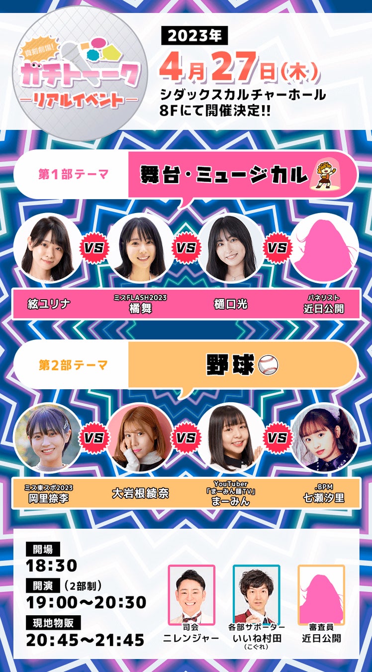 テーマは舞台・ミュージカル・野球! トークイベント「真剣劇場!ガチトーーク」4/27(木)渋谷で開催! マシェバラ配信の視聴は無料