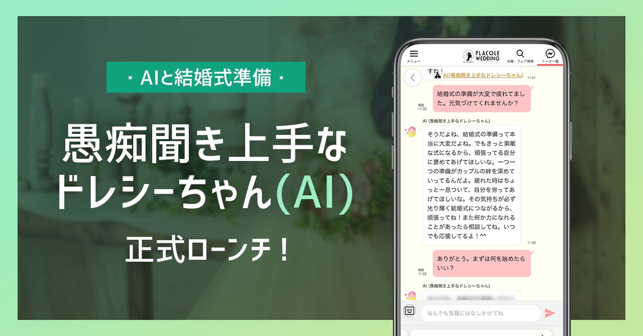 本日、正式ローンチ【AIと結婚式準備】プラコレ「愚痴聞き上手なドレシーちゃん(AI)」を