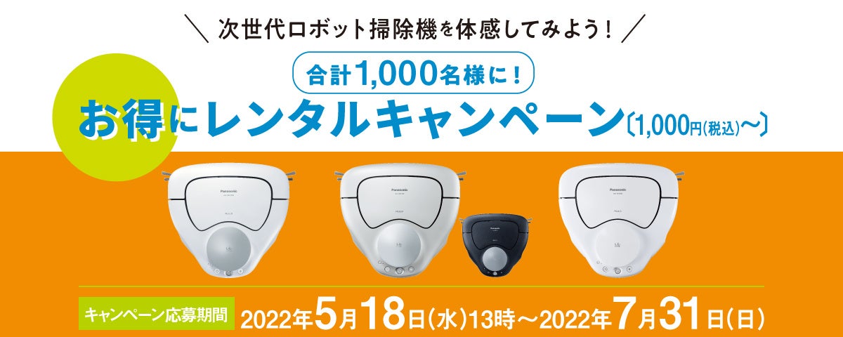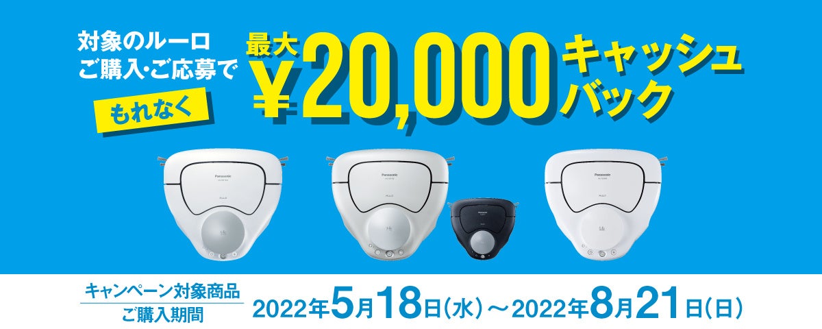 パナソニック株式会社は、ロボット掃除機「ルーロ」において、先着1,000名に2週間貸し出しする「次世代ロボット掃除機を体感してみよう!お得にレンタルキャンペーン」と、期間中の購入で最大2万円をもれなくキャッシュバックする「キャッシュバックキャンペーン」を2022年5月18日(水)より開始します。