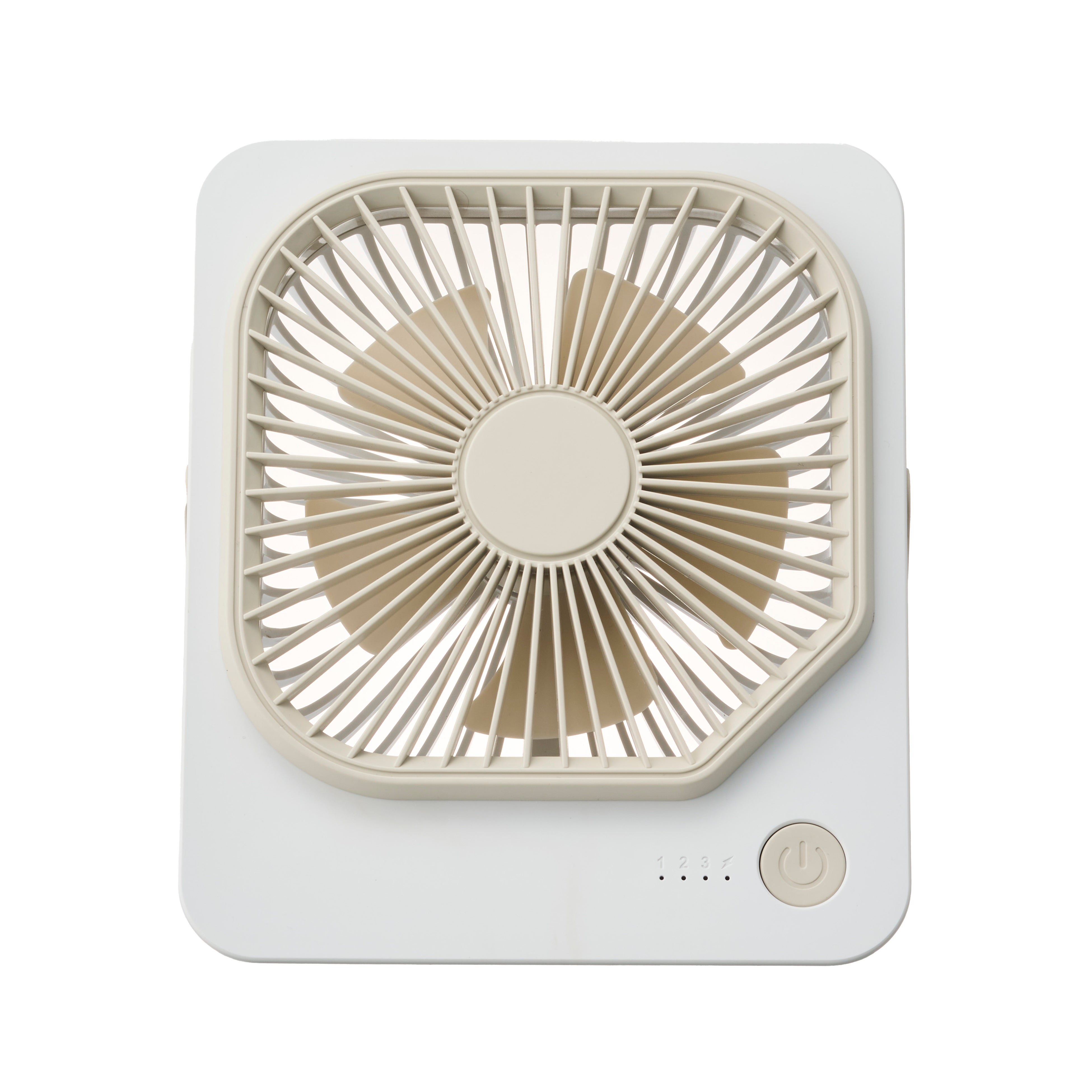 風量はお好みに合わせて弱、中、強の3段階とリズム風に調整可能です。強での使用時間は約2時間で、弱では約7時間使用が可能です。USB-TypeCで充電可能で、充電時間は約3時間です。