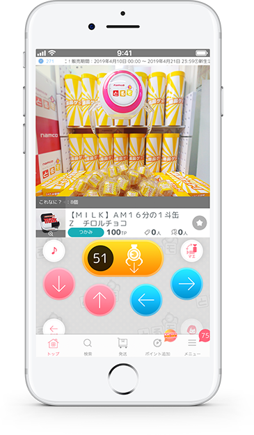 「とるモ」とは、本物のクレーンゲームをパソコンやスマートフォンで自宅など、24時間どこでもプレイができ、獲得された商品をご自宅にお届けするサービスです。バンダイナムコアミューズメントが培った運営ノウハウを活かし、実際のお店同様のゲームプレイをお楽しみいただけます。