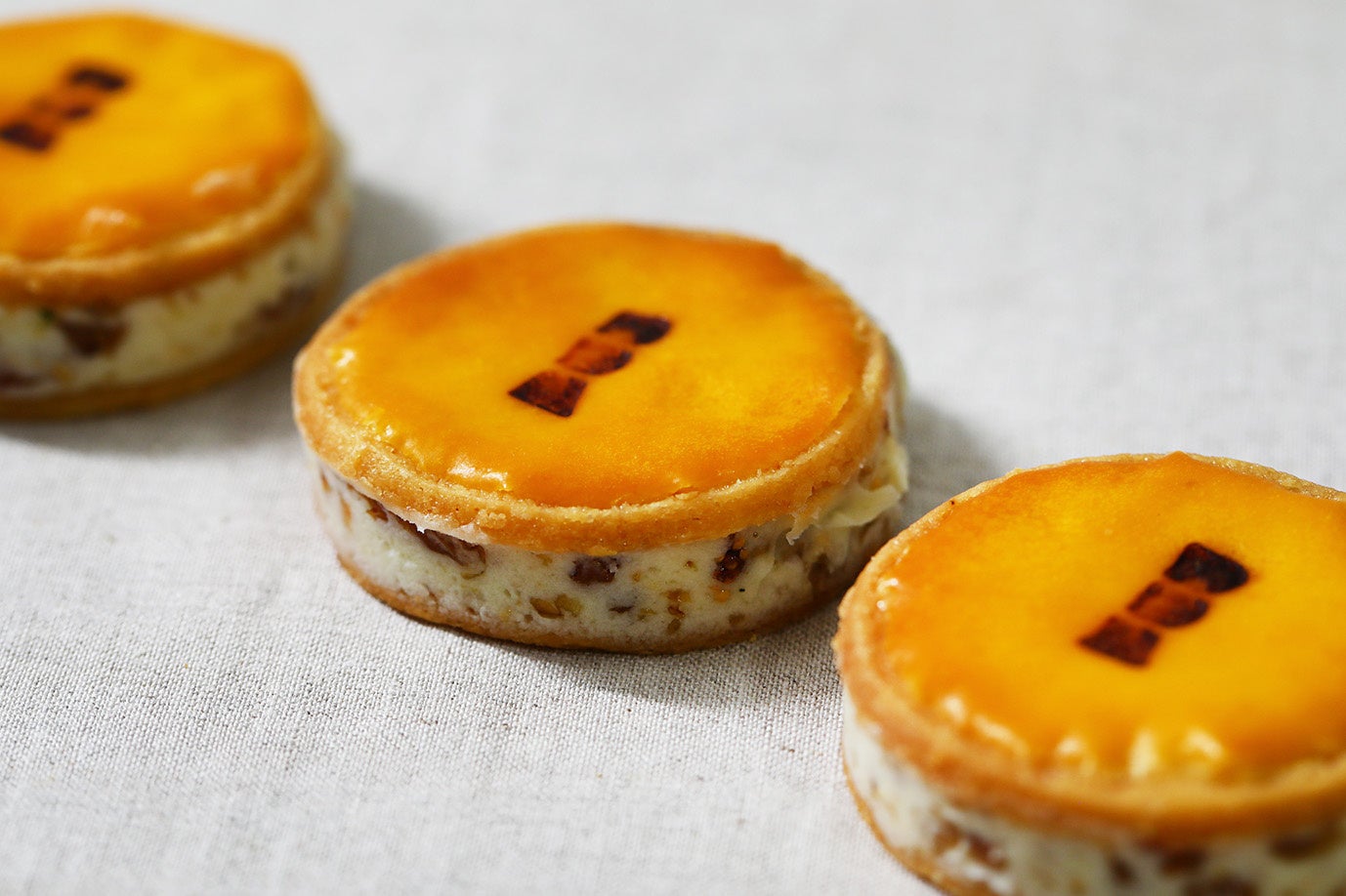 お酒の風味をまとったドライフルーツの香りが鼻に抜ける、大人な味わいのバターサンドです。コクのあるバタークリームの味わいをお楽しみください。隠し味の七味がほのかなアクセントです。