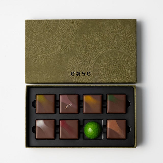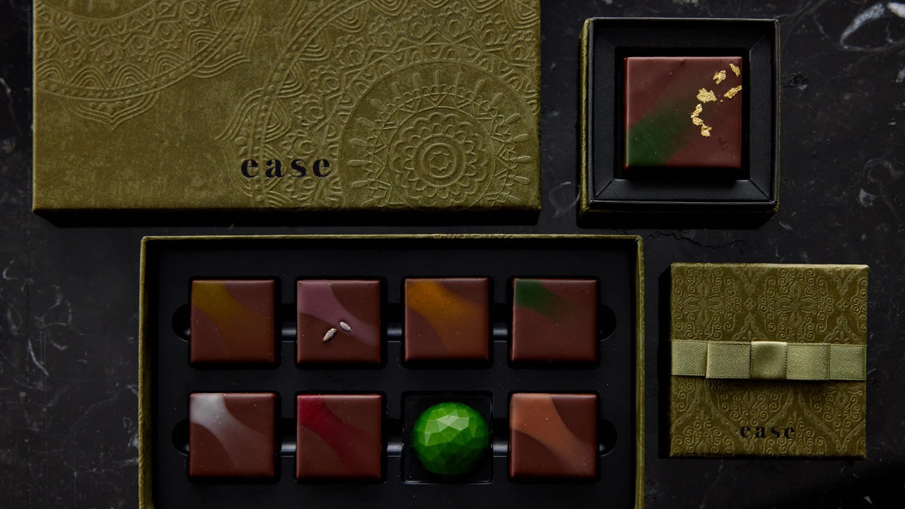 東京・日本橋兜町に本店を構える「パティスリー イーズ」大山恵介シェフが手がける、フルーツフレーバーを中に閉じ込めたボンボンショコラ。まるで宝石のようにひとつひとつ丁寧に収められたチョコレートはもちろん、ペイズリー柄の意匠が施されたパッケージのうつくしさにも思わず目を奪われます。