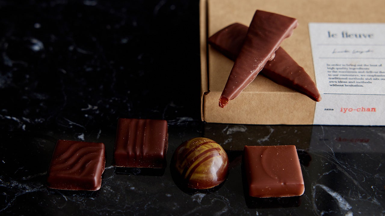 自然豊かな兵庫県北部・但馬地方の養父(やぶ)でオーガニック農家に育ったシェフがつくる、ひと粒ひと粒を丁寧に仕あげたチョコレート。シェフが惚れ込んだ広島・瀬戸田のいよかんやしまなみレモンなど、生産者のもとを訪ねて選び抜いた良質な素材を、手間ひまをかけてカカオと掛けあわせます。