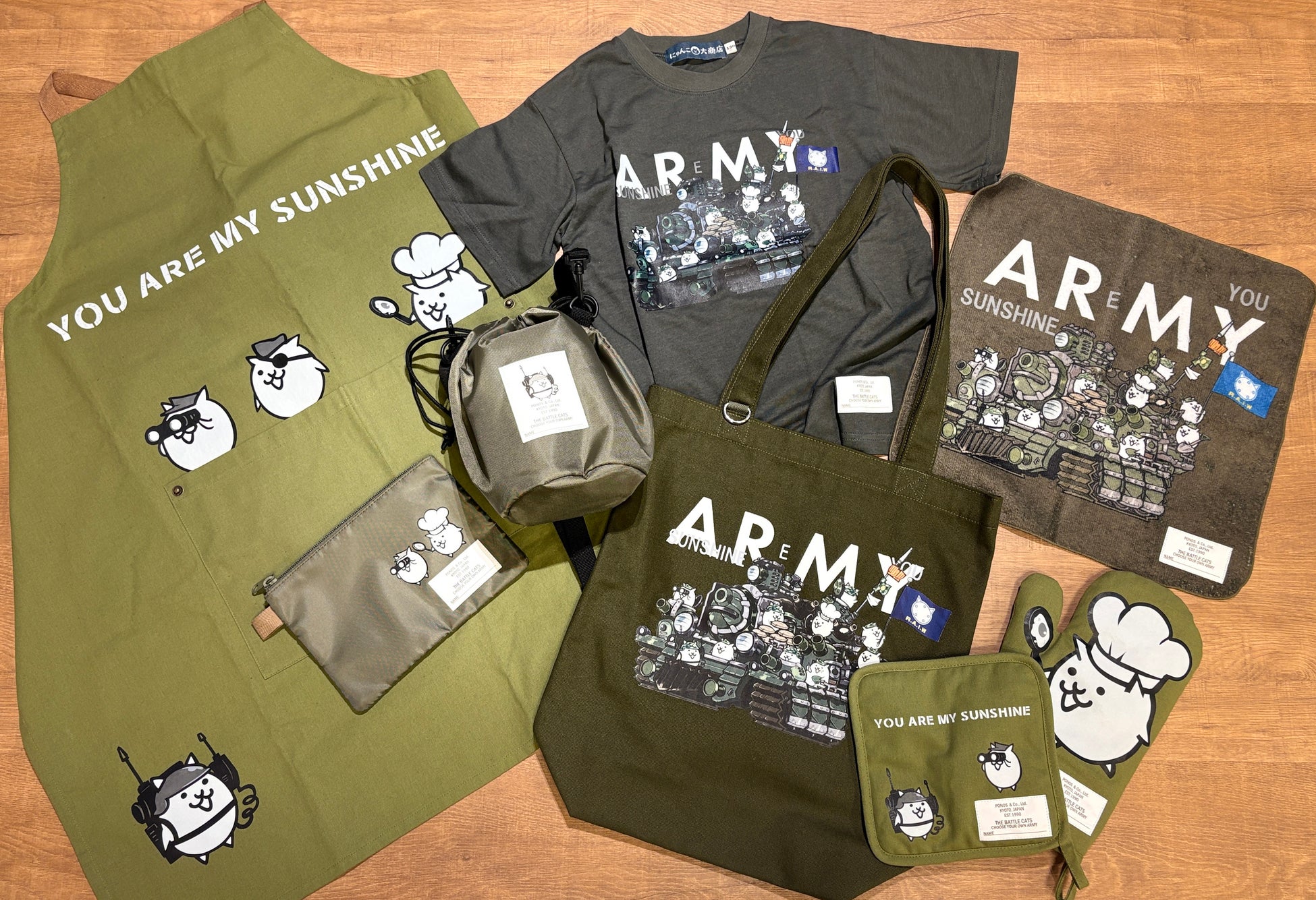 「撃滅戦車ギガパルド」「超撃滅戦車ギガパルド」をモチーフにデザインされたTシャツの他、エプロンやトートバッグなど、様々なグッズが販売されます。