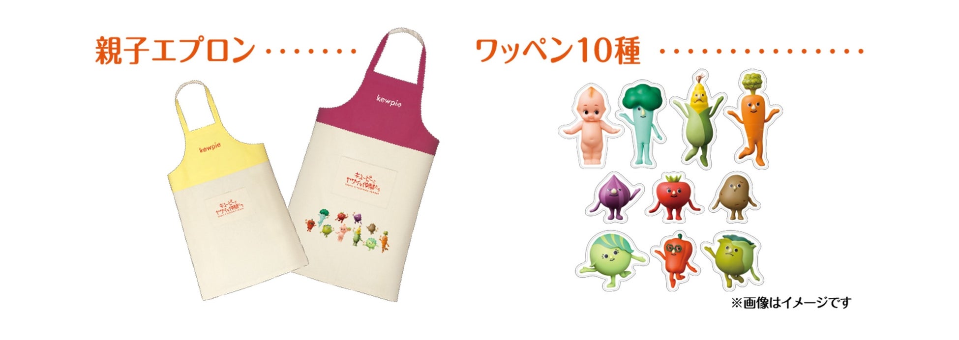 Bコースは、キャベツの外葉や芯など野菜の未利用部分で染めた布を使った「親子エプロン&オリジナルレシピブック」です。子ども用エプロンは、付属の「キユーピーとヤサイな仲間たち」ワッペン(10種)を使って自分好みにデザインできます。