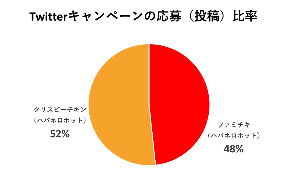 キャンペーン終了後の応募(投稿)結果は、「クリスピーチキン(ハバネロホット)」の方が52%とわずかにファミチキ(ハバネロホット)を上回りました(7月11日終了時点)。