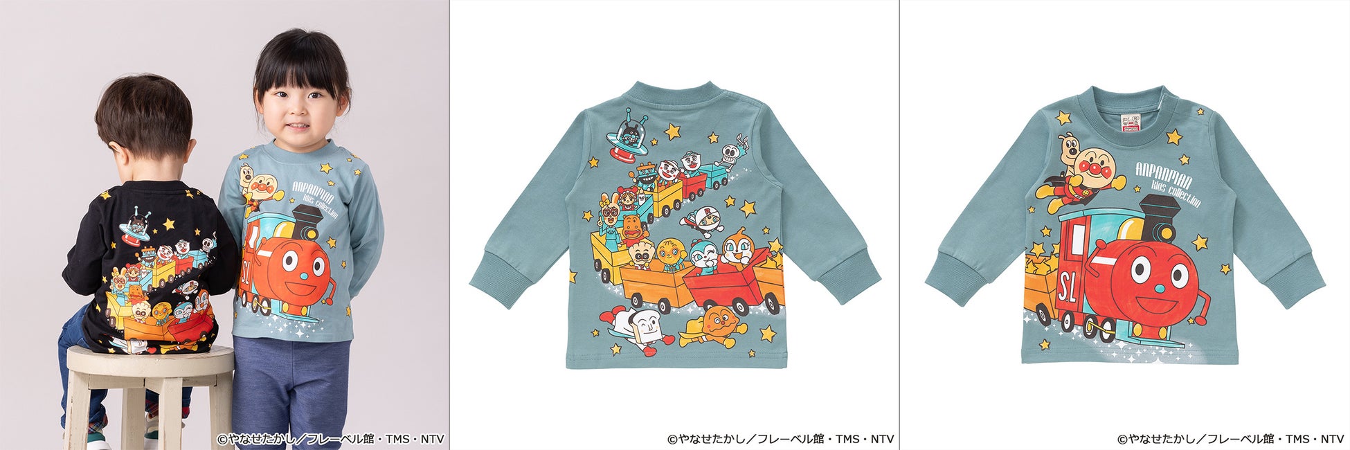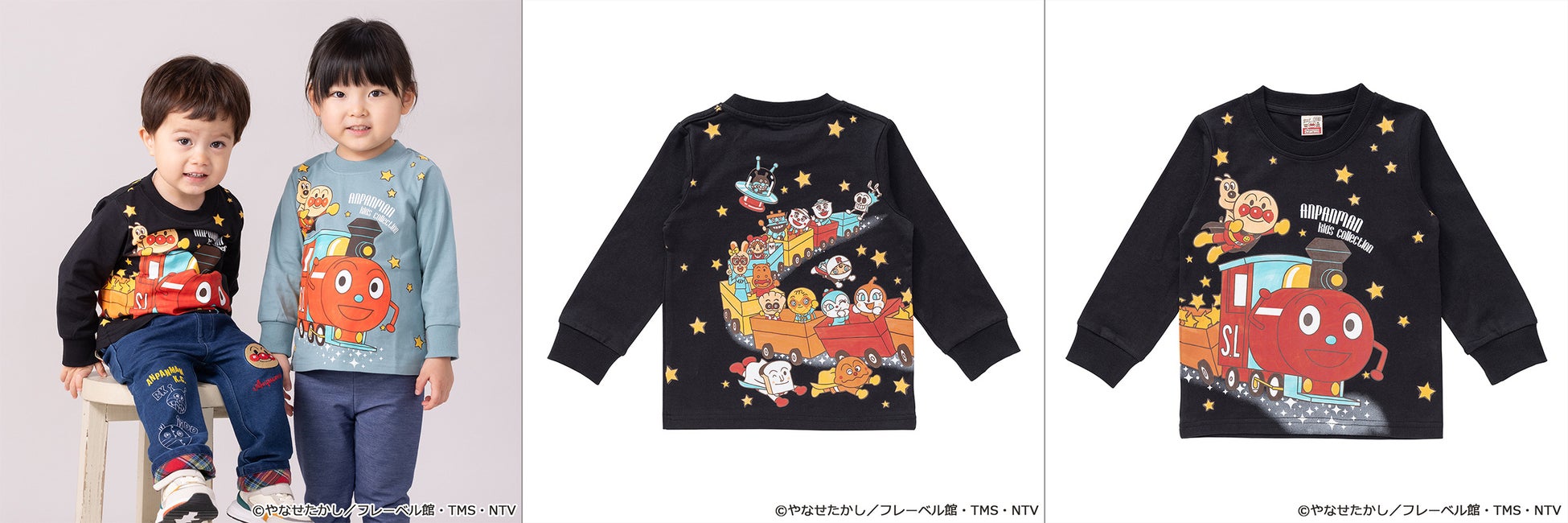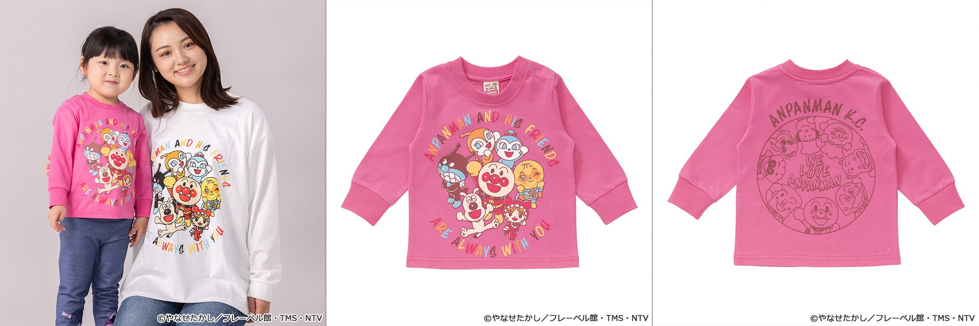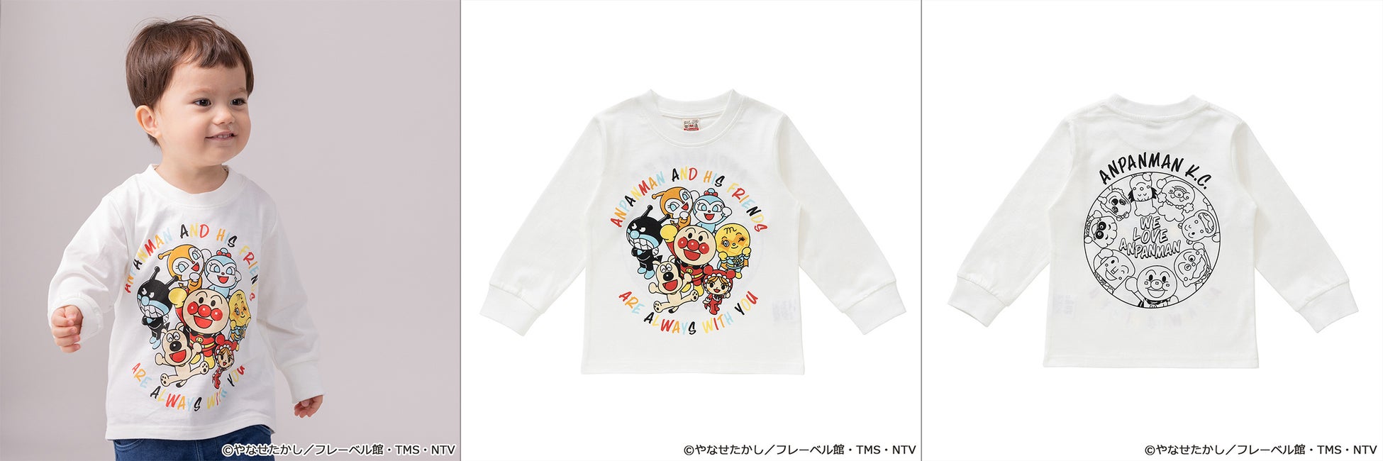アンパンマンやなかまたちが見上げる姿がかわいい長袖Tシャツやアンパンマンとめいけんチーズをさがら刺繍で表現したトレーナーなど親子で着られる長袖ペアコレクションが新登場!