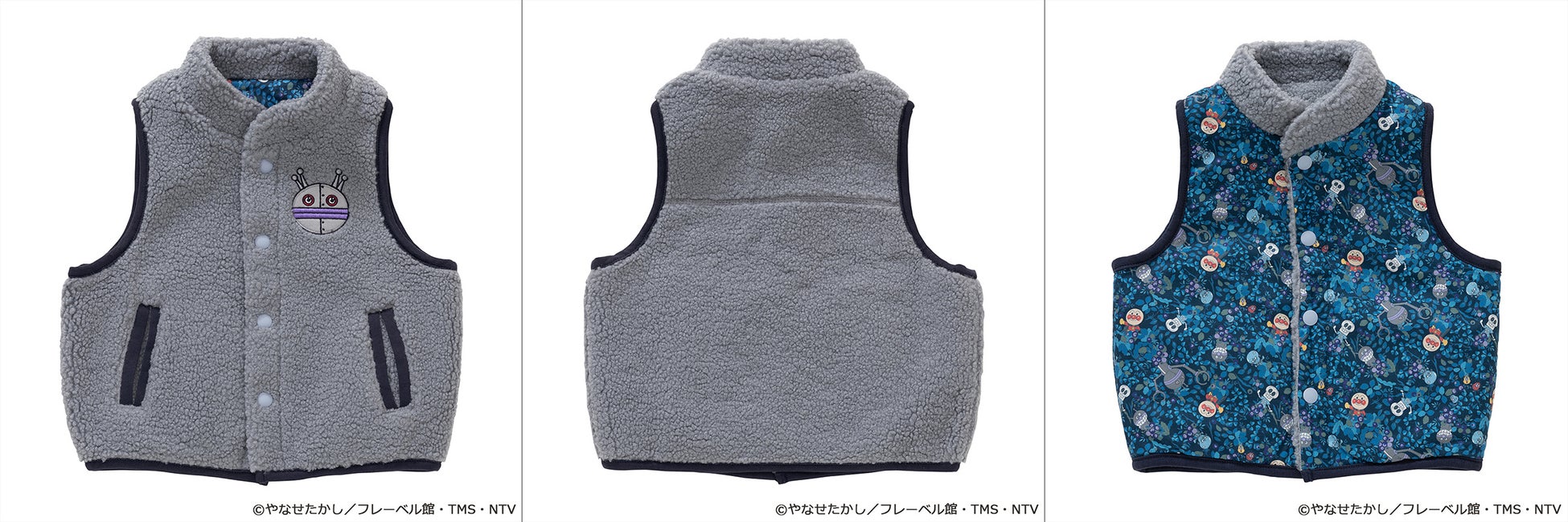 無地ボアの面はアンパンマンとだだんだんのアップリケ刺繍が施されています。