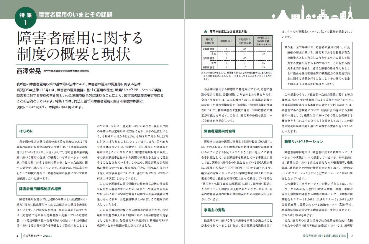 【自治実務セミナー】自治体法務に関する旬なテーマを毎月お届け!11月号では、「障害者雇用に関する制度の概要と現状」について解説いたします!
