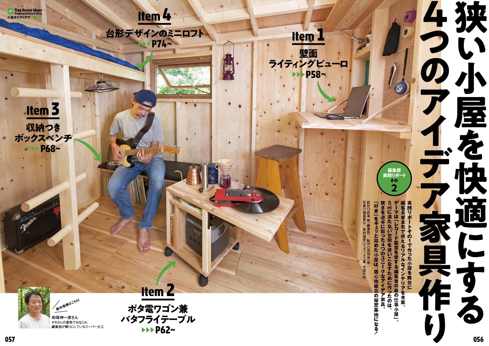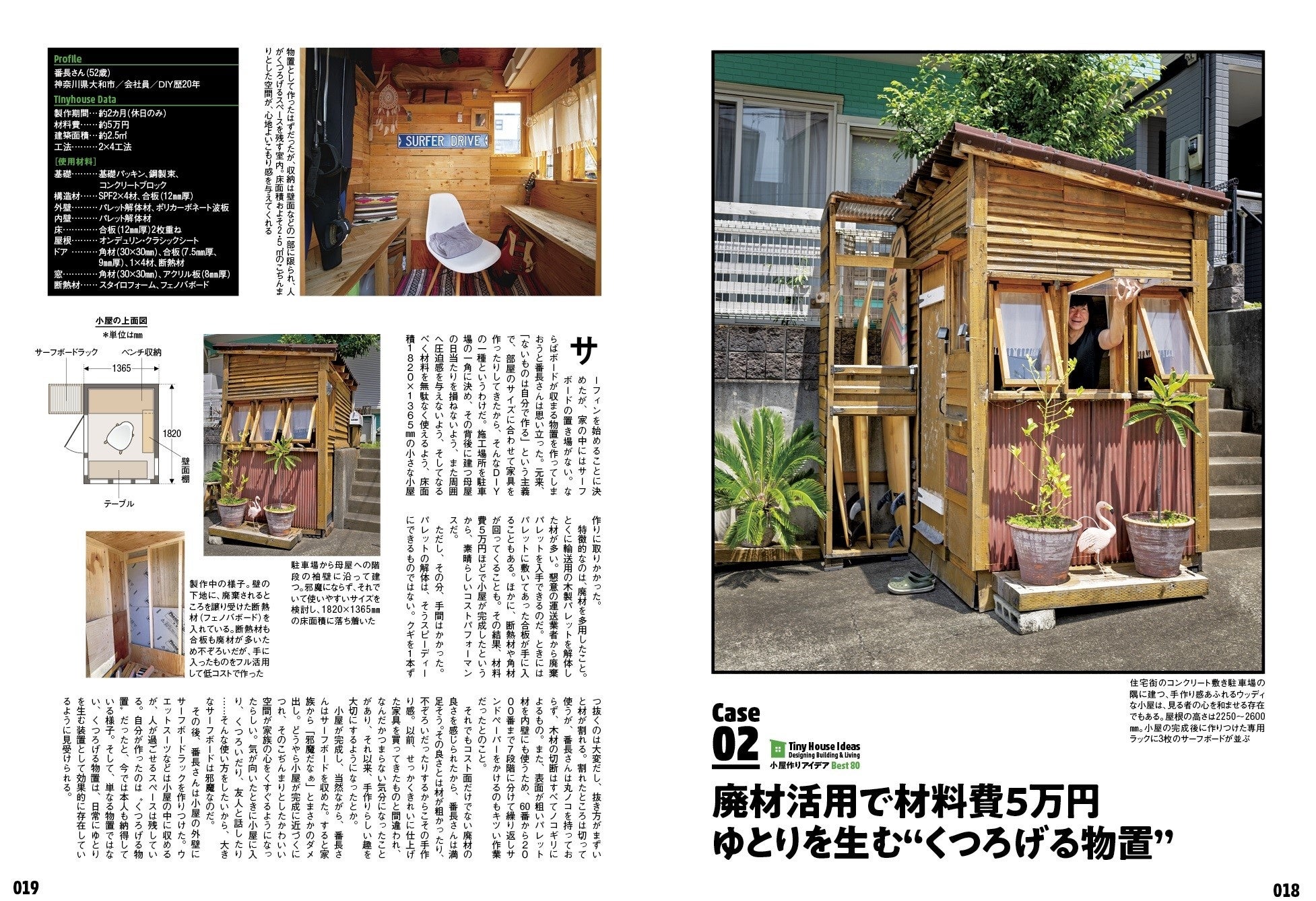 DIYによる小屋の建て方は千差万別。留意すべきところはあれど、基本は自由でルールはなし。そこで本特集では、さまざまなタイプの小屋を取材し、工法、構造から内装、建具に至るまで、そのすべてを徹底解剖。アイデアひとつひとつをピックアップすることで、多様な小屋の作り方、活用法に迫ります。あなたの小屋作りのヒントになること間違いなしのタイニーハウスカタログをお楽しみください。