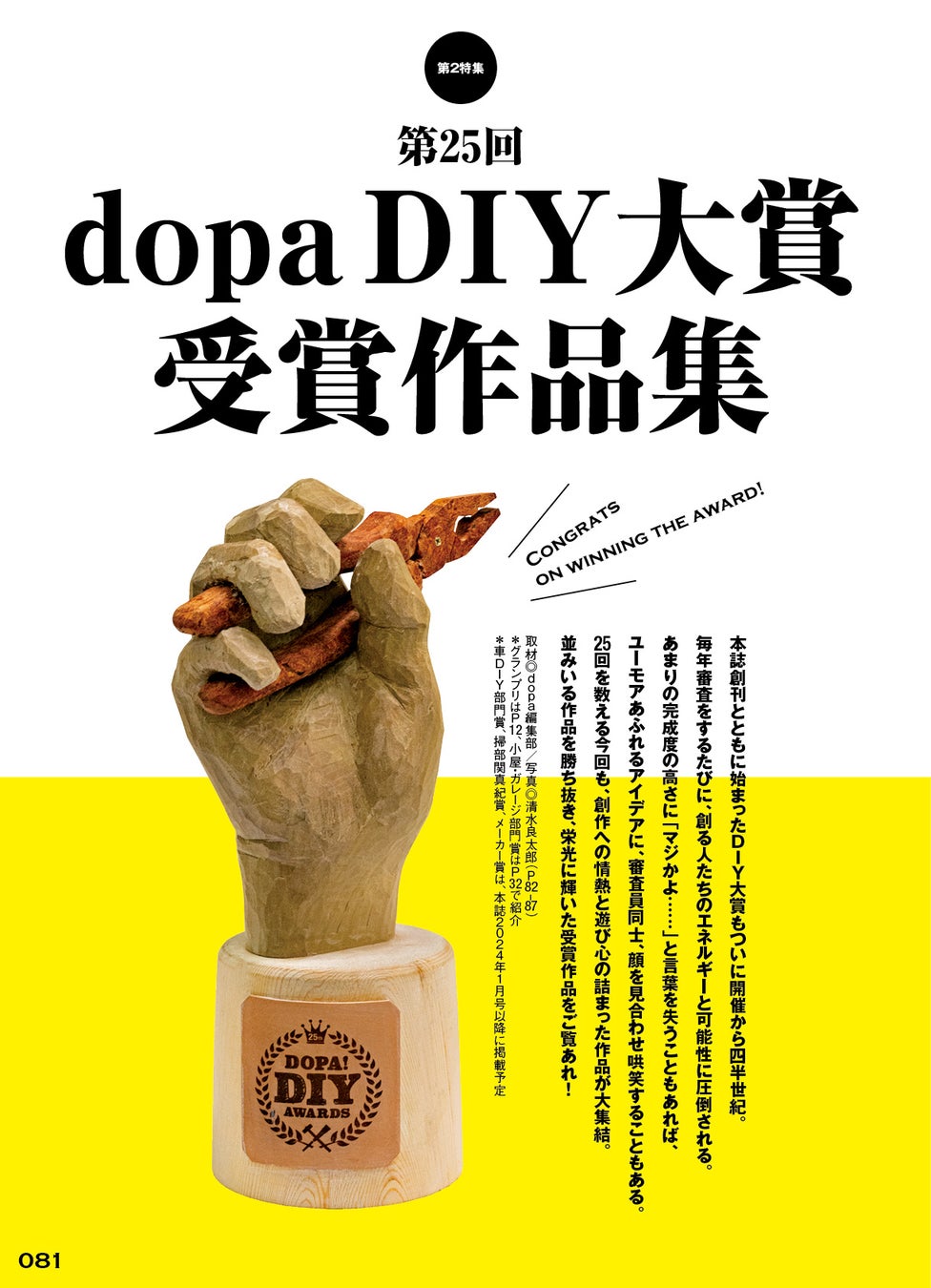 第2特集は「第25回 dopa DIY大賞受賞作品集」