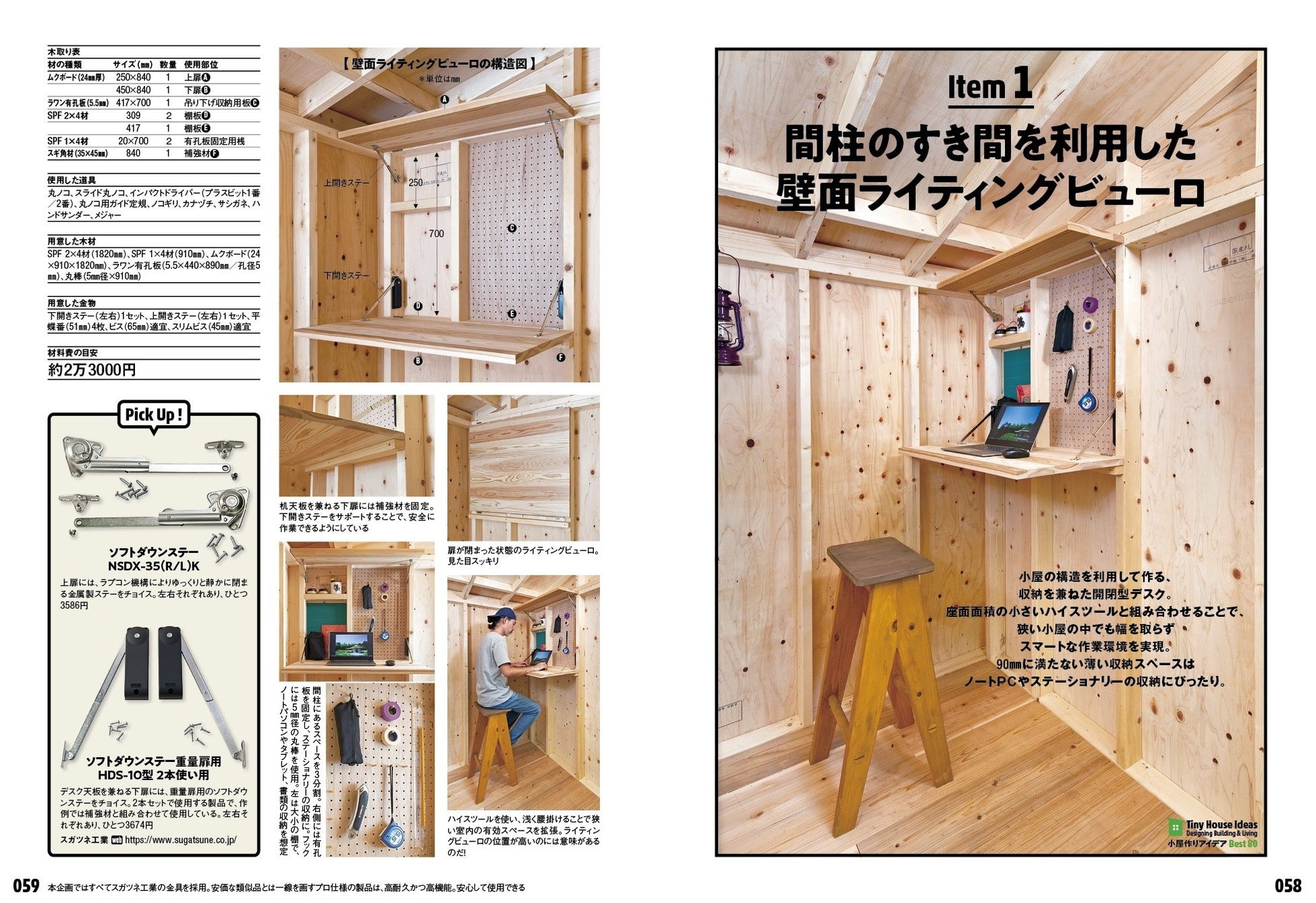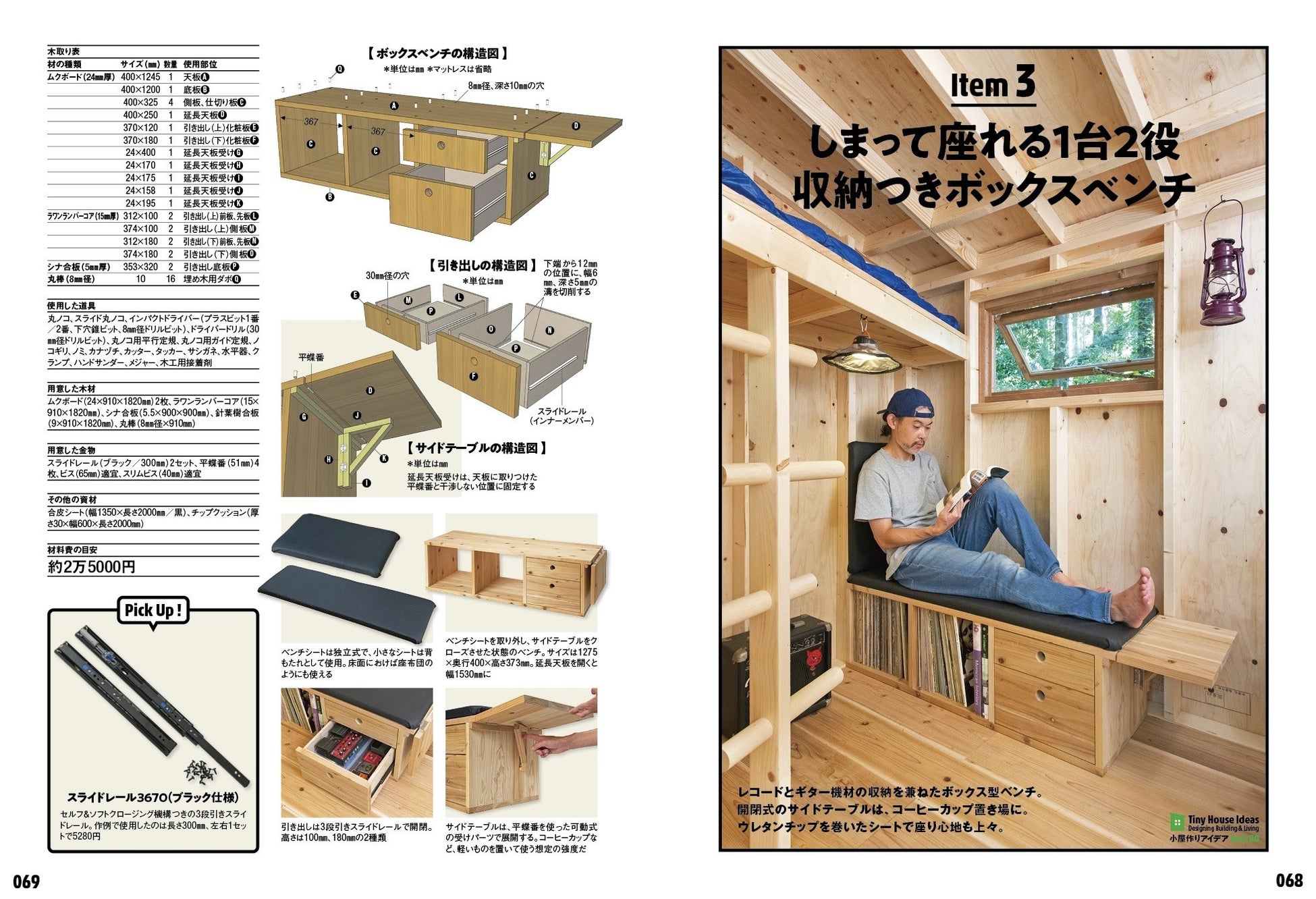 恒例の編集部実践リポートは2本立て。1本目は「究極の建てやすさ」をコンセプトに、ビギナーでも簡単に作れることを追求した小屋作りリポート。2本目は製作した小屋を舞台にした、狭小空間を快適に過ごすための4つのアイデア家具作り。いずれも詳細な設計図から資材リストはもちろん、電動工具の使い方やテクニックまでをていねいに解説。これを読めば、絶対に小屋が作れる!