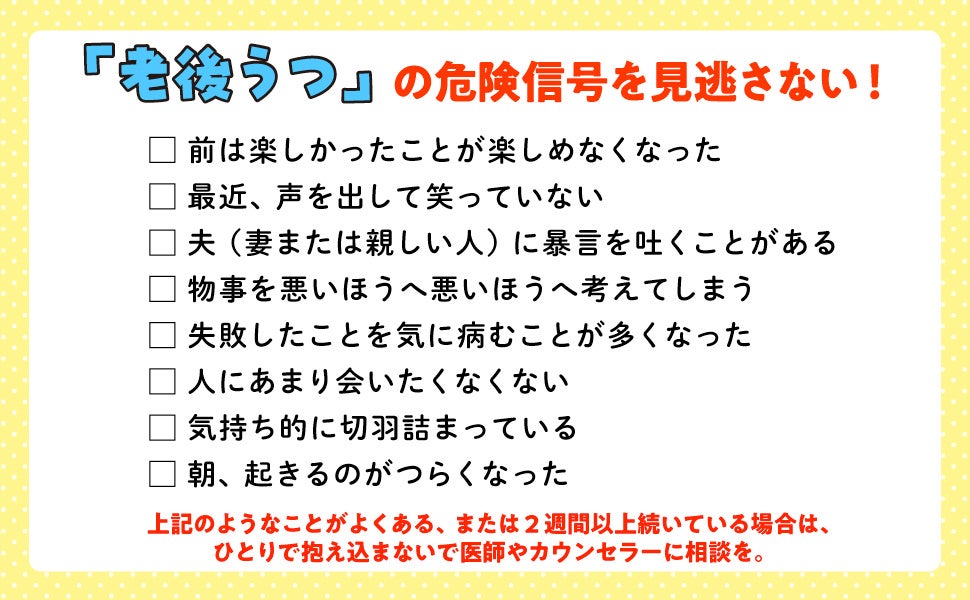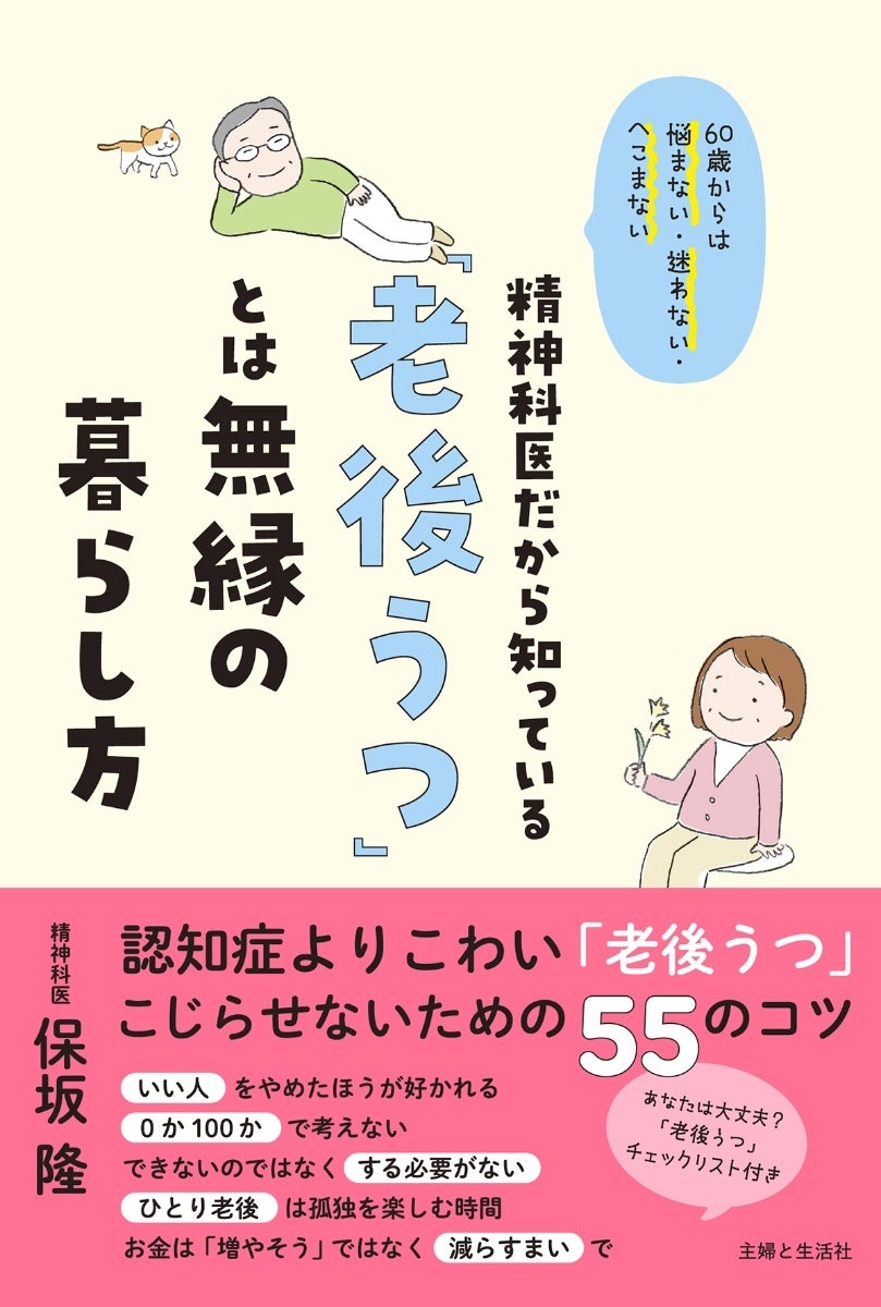 著しく生活の質(QOL)を損なう「老後うつ」。放置すると寝たきりになることも。そんな「うつ」とは無縁の穏やかな老後を迎える生き方を、ベテラン精神科医がやさしくアドバイスする一冊『60歳からは悩まない・迷わない・へこまない 精神科医だから知っている「老後うつ」とは無縁の暮らし方』、主婦と生活社より5月24日(金)に発売します。
